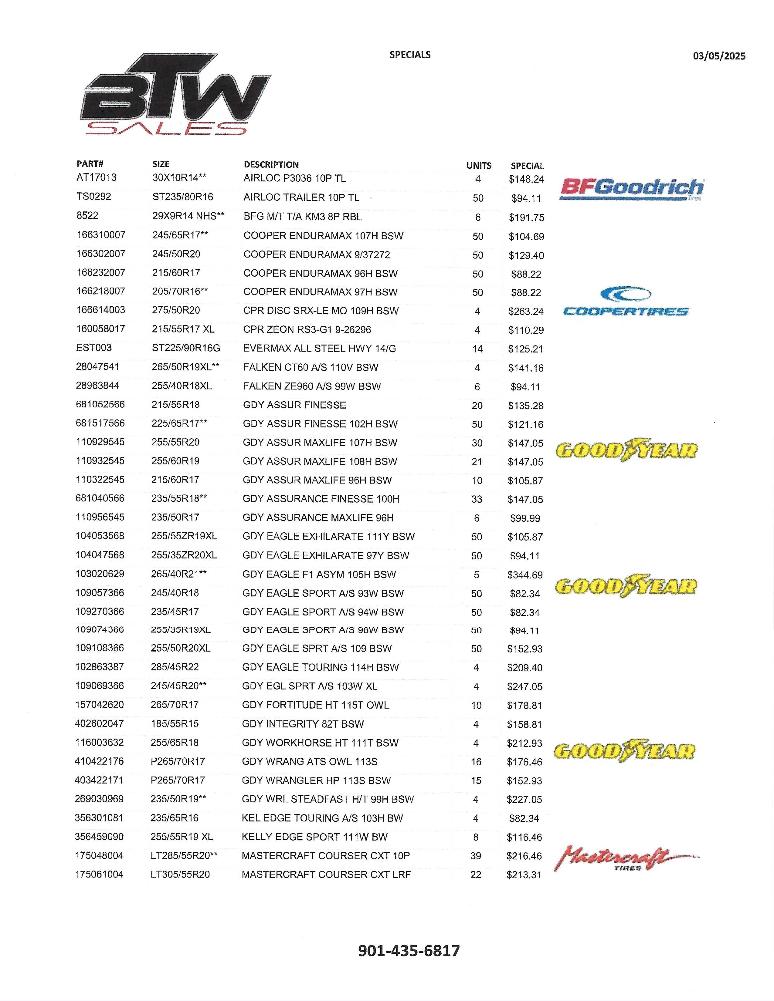 BTW Distributors and Sales 901-435-6817